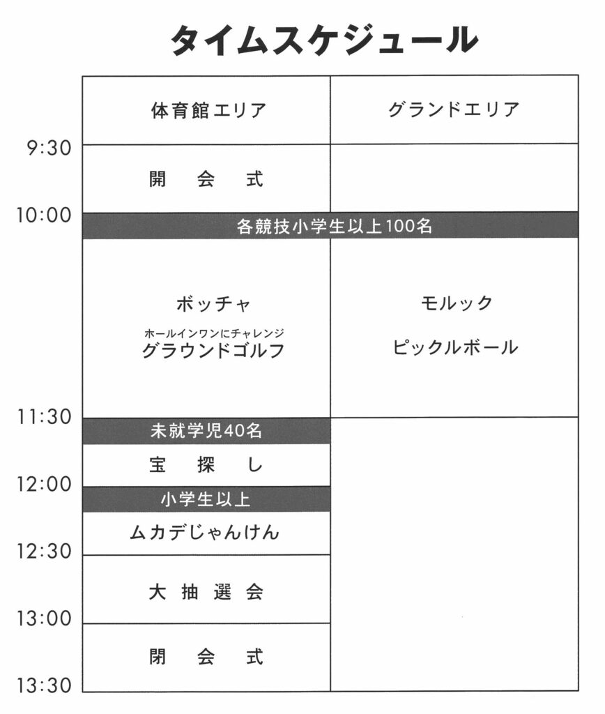 宝探し・ムカデじゃんけんの参加にプログラムは不要です。 体験会・ムカデじゃんけん・抽選会は小学生以上が対象ですのでご了承下さい。