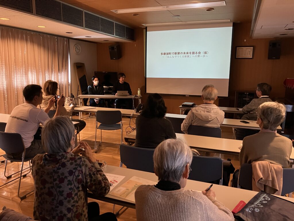 2025年11月15日、多摩湖ふれあいセンターで「新家の未来を語る会」が開かれ、地域住民や行政関係者など12名が参加しました。古民家「新家」は長年空き家として扱われてきましたが、所有者のアートへの関心をきっかけに、市・大学・民間企業と連携して再生を目指す「新家プロジェクト」が始動しています。